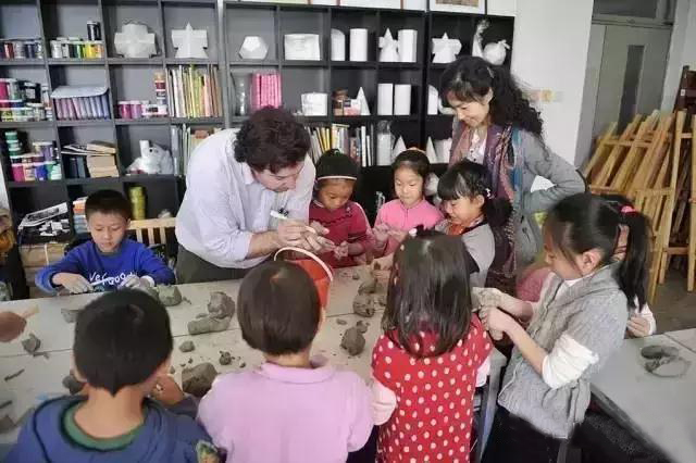 (中央美院少儿艺术教育工作室外教上课场景)