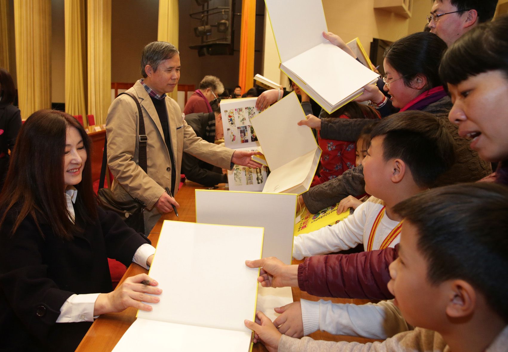 小作者争相让嘉宾在印有自己作品的画集上签名